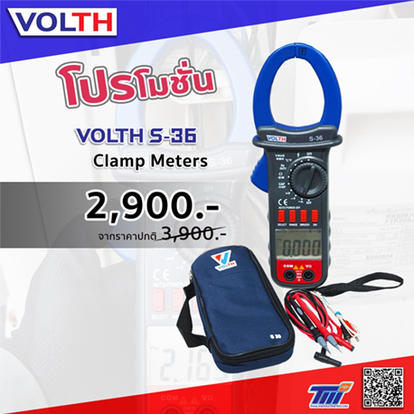 โวลท์ รุ่น S-36, ดิจิตอลแคลมป์มิเตอร์สำหรับงานไฟฟ้าทั่วไปมีฟังค์ชั่นครอบคลุมงานด้านไฟฟ้า อย่างครบครัน มาพร้อมฟังก์ชั่น ปากแคลมป์ขนาดใหญ่ กว้างสูงสุดถึง 2.05 นิ้ว และวัดค่ากระแสไฟฟ้าสลับ ได้สูงสุดถึง 1000A หน้าจอแสดงผลขนาดใหญ่ รูปร่างและขนาดของเครื่องออกแบบมาให้จับได้อย่างกระชับมือ พร้อมมาตรฐาน CAT II ที่ระดับ 1000V ออกแบบตามมาตรฐาน IEC61010-1 จึงมั่นใจได้ ถึงความปลอดภัยในการใช้งาน และมาพร้อมกระเป๋าใส่เครื่องคุณภาพสูง สวมใช้งานกับเข็มขัดได้